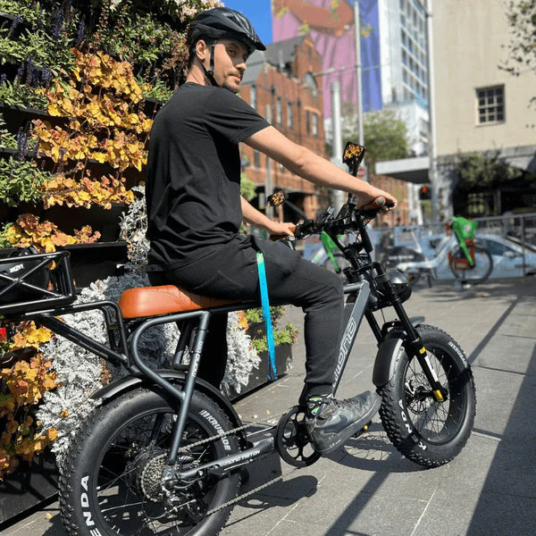 ✅ 20” cruiser-style fat tyres – stable and comfortable across city roads or light trails.